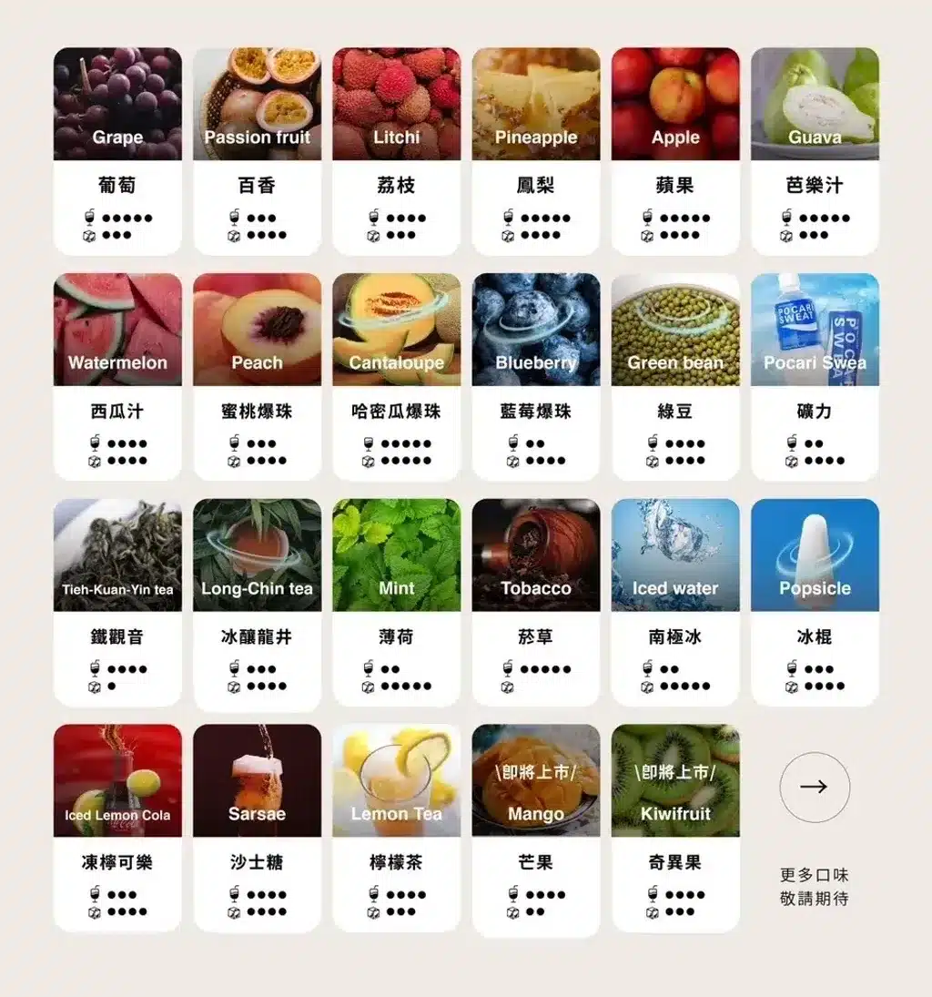 每種口味皆經過尼古丁與香精黃金比例調配,口感層次豐富、回甘順口。